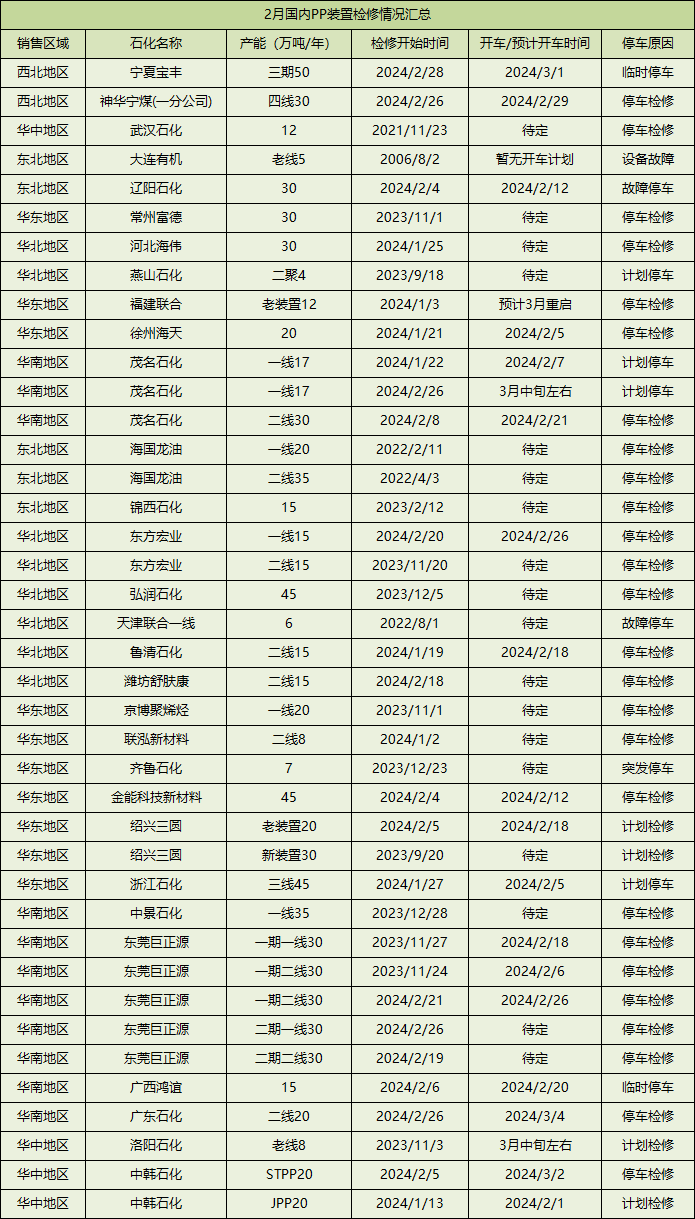 新聞來源:2024年2月PP裝置檢修情況簡析-中塑行情-中塑資訊-中塑在線塑料行業(yè)門戶 (21cp.com)